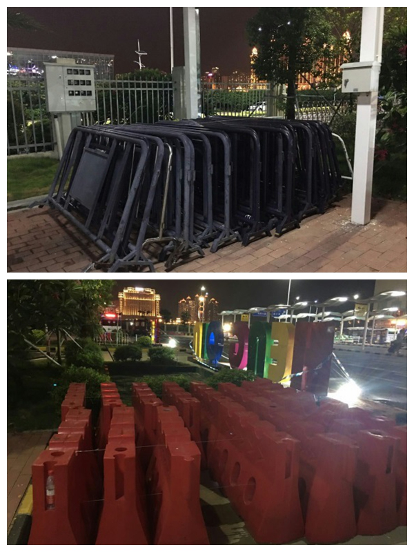 (為預(yù)防交通癱瘓準備鐵馬和水馬,地點:橫琴口岸)