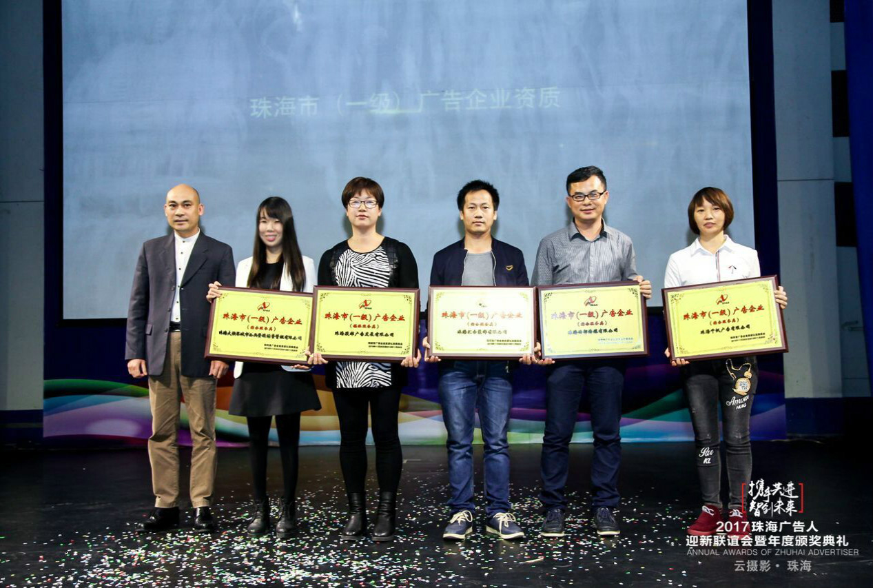 2017年1月6日,我司獲邀參加了“2017珠海廣告人迎新聯(lián)誼會暨年度頒獎典禮”,典禮上,珠海市橫琴新區(qū)工商行政管理局市場規(guī)范管理科林木華科長為我司頒發(fā)了“珠海市一級廣告企業(yè)資質(zhì)”牌匾。