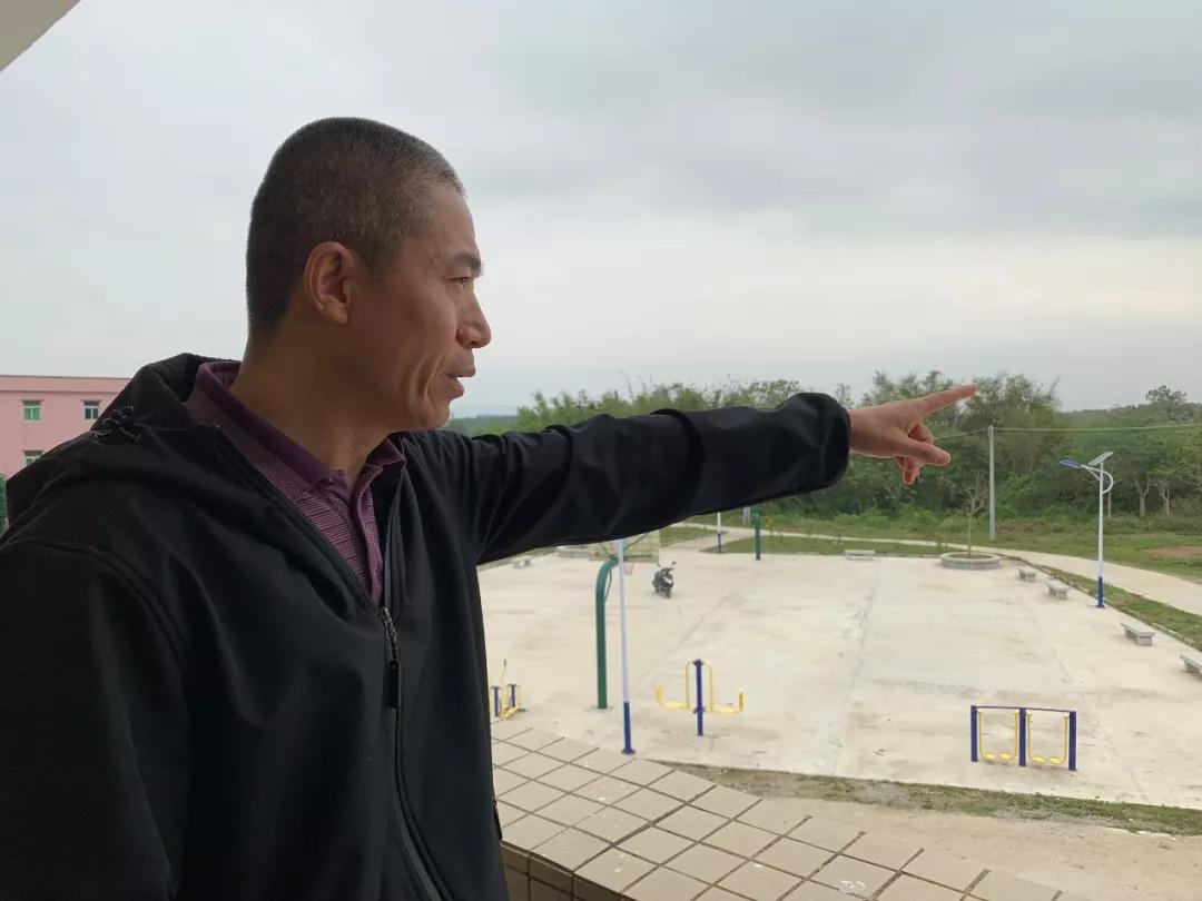 楊舜向記者介紹村里新建的籃球場(chǎng)