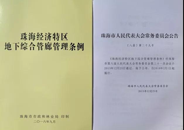 在運(yùn)營(yíng)管理的同時(shí)率先探索管廊立法。2015年12月25日,大橫琴管廊公司參與編寫的《珠海經(jīng)濟(jì)特區(qū)地下綜合管廊管理?xiàng)l例》獲得通過并正式施行,成為全國(guó)首個(gè)專門規(guī)范地下綜合管廊建設(shè)與管理的地方性法規(guī)。