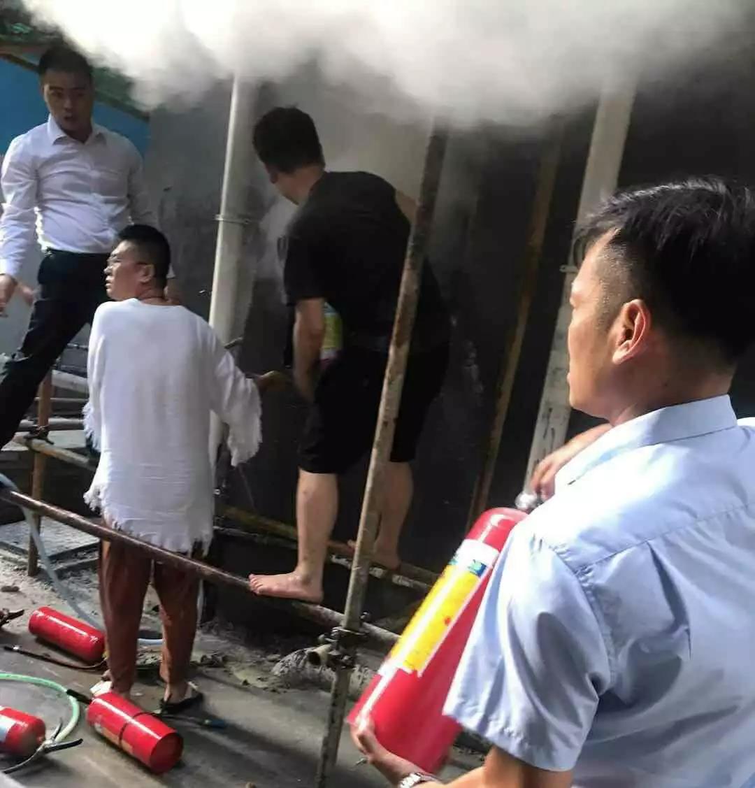 起火的是民宿一樓儲存布草的雜物房,鐘舜祥等人到達(dá)的時(shí)候,現(xiàn)場已有5、6名民宿人員正嘗試使用水龍頭滅火。確認(rèn)起火地點(diǎn)沒有人員被困后,接受過消防訓(xùn)練的鐘舜祥等人,連同村長、書記和附近居民一起使用滅火筒參與滅火。謝曉娟在旁組織現(xiàn)場秩序。5點(diǎn)17分消防車到達(dá)時(shí),鐘舜祥等人用了將近二三十個(gè)滅火筒,成功在20分鐘內(nèi)控制住了火勢,沒有進(jìn)一步往民房密集的周圍蔓延。