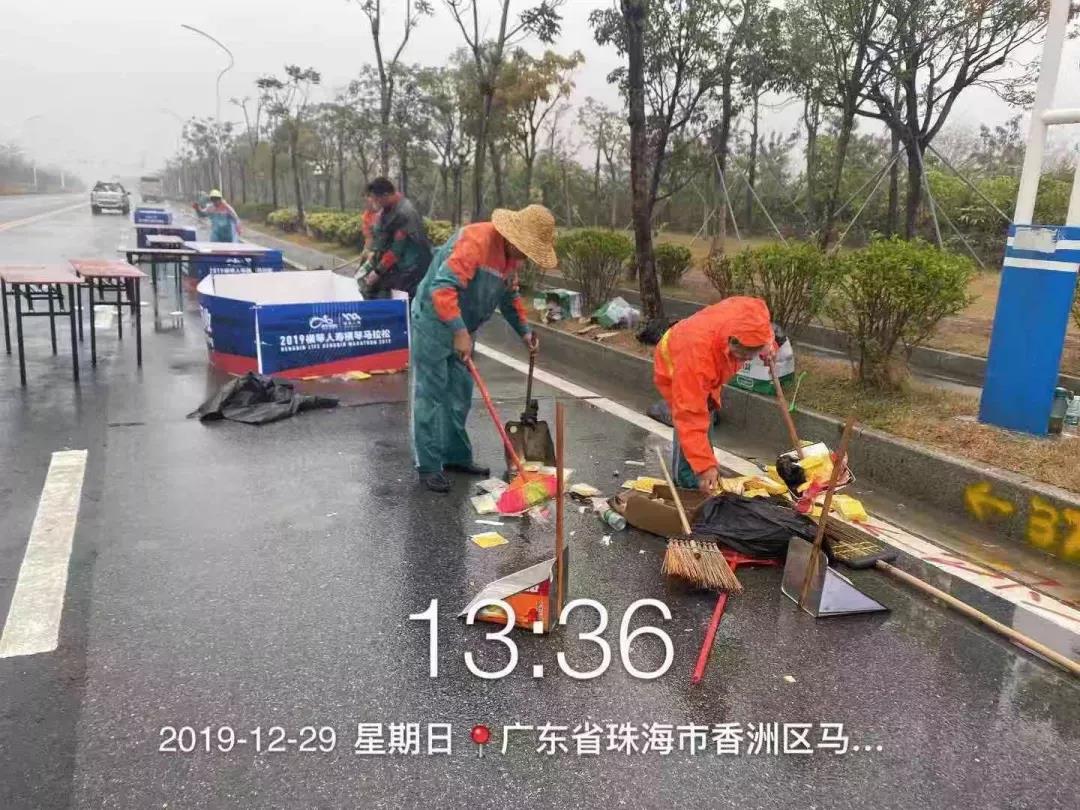 12月28-29日,大橫琴城資共出動(dòng)環(huán)衛(wèi)人員410人次,出動(dòng)降塵車(chē)、清洗車(chē)、機(jī)掃車(chē)、平板車(chē)、路面養(yǎng)護(hù)車(chē)等408車(chē)次,對(duì)馬拉松賽道進(jìn)行全線環(huán)衛(wèi)大掃除工作,共計(jì)清理賽道及各路段周邊垃圾71噸,洗掃路面、灑水降塵用水3840噸,沖洗沿線所有路燈桿、護(hù)欄、公交候車(chē)亭,確保賽道環(huán)境干凈整潔。同時(shí),在馬拉松賽事各活動(dòng)站點(diǎn)關(guān)閉后,安排人員、車(chē)輛第一時(shí)間進(jìn)行道路清障及沿線垃圾清理工作。