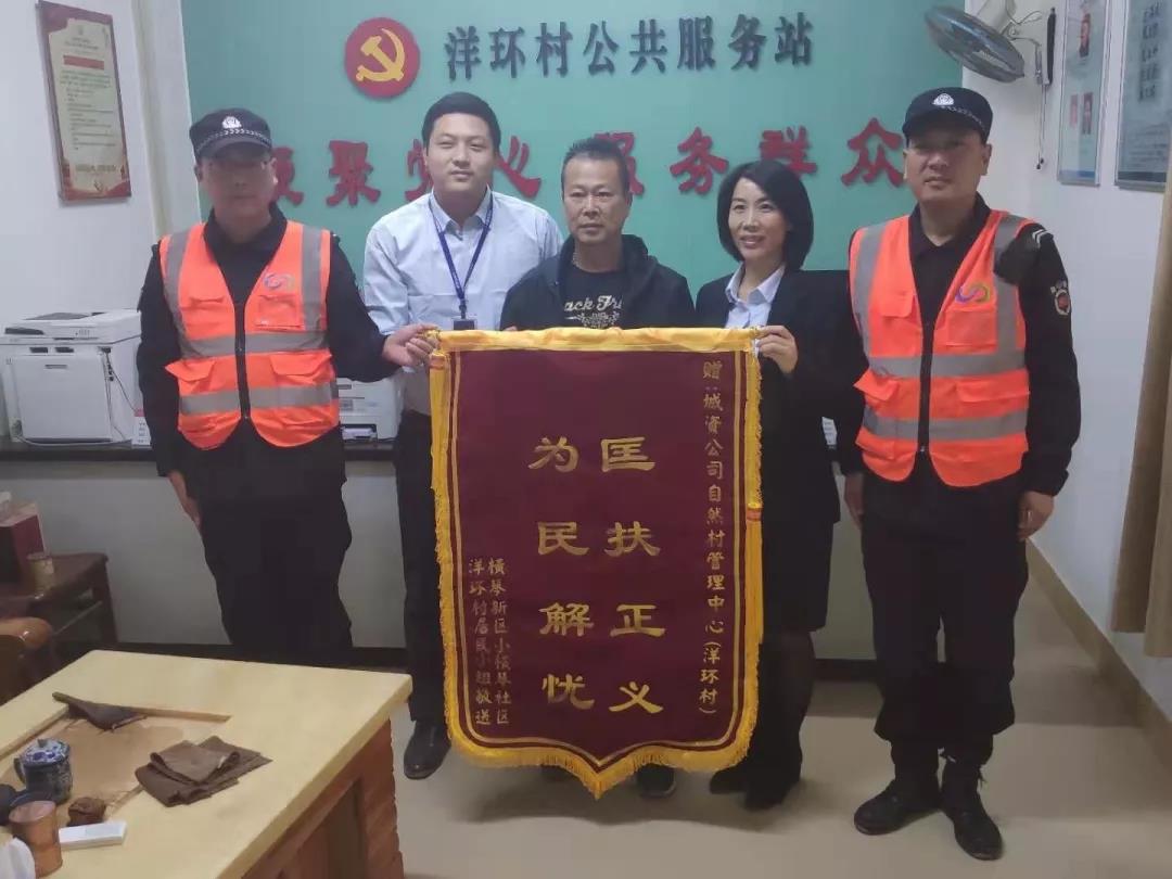 橫琴新區(qū)小橫琴社區(qū)、洋環(huán)村居民小組贈(zèng)予自然村管理中心錦旗及表揚(yáng)信