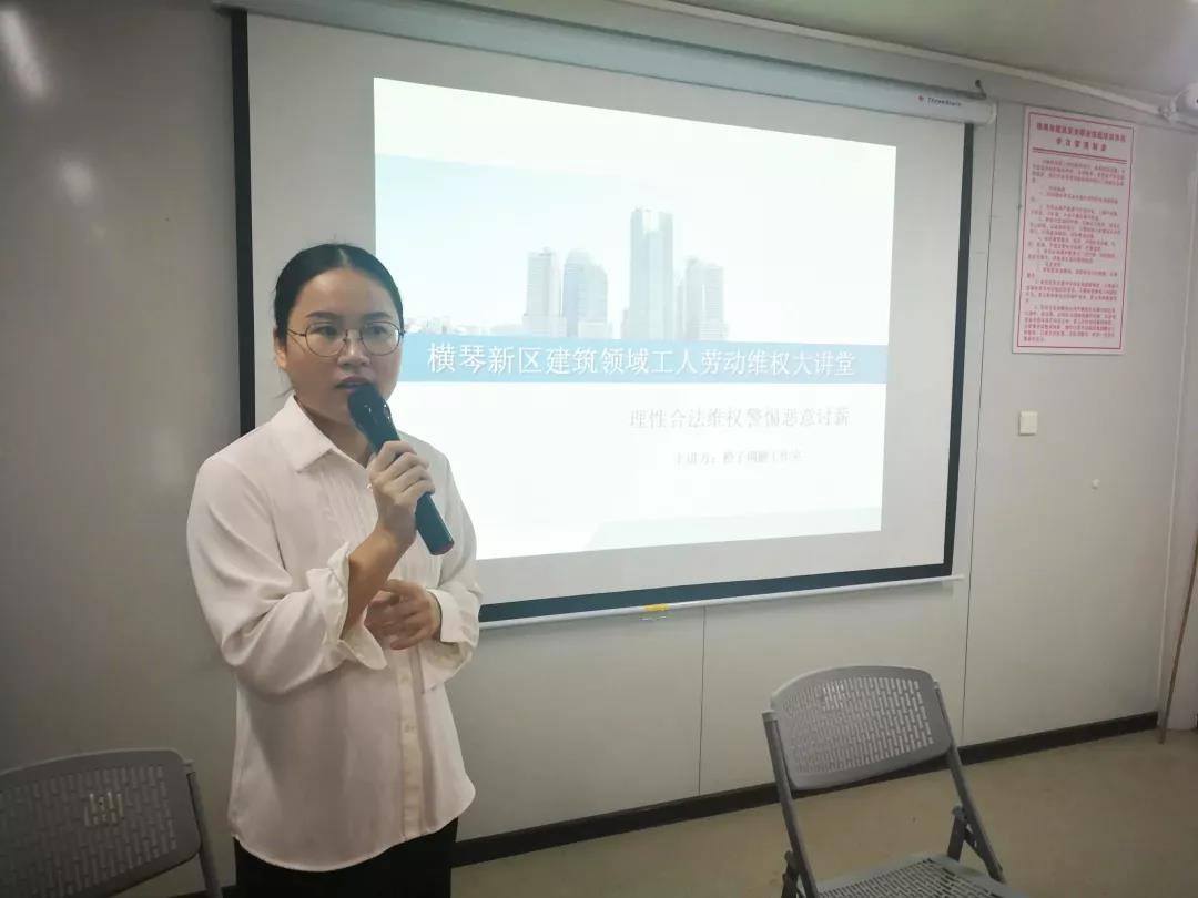 在橙子調(diào)解工作室,這樣斗智斗勇、軟磨硬泡的“追薪時(shí)刻”并不少見。為了幫助農(nóng)民工解決實(shí)際困難,提升普法意識(shí),調(diào)解工作室項(xiàng)目主管林硯文積極推動(dòng)調(diào)解室在橫琴的農(nóng)民工培訓(xùn)學(xué)校里開展普法培訓(xùn),自2019年7月以來合計(jì)培訓(xùn)了10場,參加人次超過1000人,覆蓋全島50%以上的工地企業(yè)。