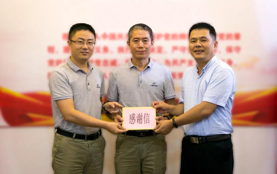 工人贈(zèng)與劉瑩瑩(右二)、張鳳鎣(右一)錦旗