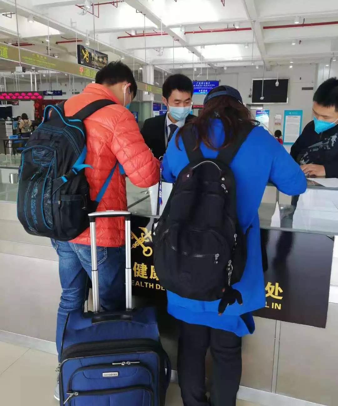 客服班長(zhǎng)陶世綱是不少口岸同事眼中的榜樣。疫情期間,他主要負(fù)責(zé)現(xiàn)場(chǎng)疏導(dǎo)旅客,對(duì)湖北籍及經(jīng)過疫區(qū)的出入境旅客進(jìn)行詳細(xì)信息登記并配合安防同事將旅客送往指定酒店進(jìn)行隔離。期間,難免會(huì)遇到旅客不太理解、害怕隔離的情況,每當(dāng)這個(gè)時(shí)候,陶世綱與同事總會(huì)耐心跟旅客進(jìn)行溝通、安撫旅客情緒。