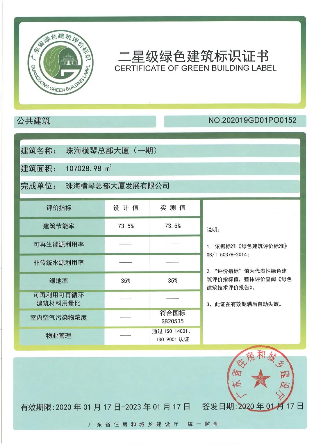獲得綠色建筑二星級運行標(biāo)識認(rèn)證的
