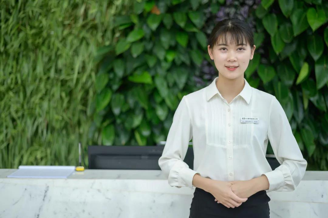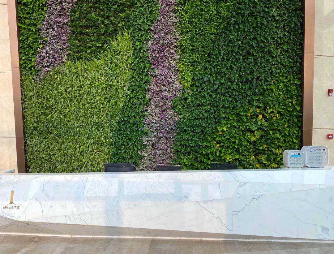 綠化墻前,物業(yè)客服進(jìn)行日常接待(該圖攝于疫情發(fā)生之前)
