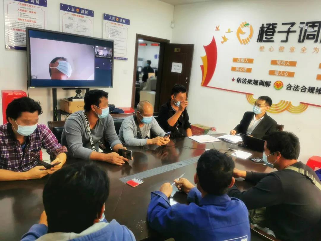 橙子調(diào)解工作室的調(diào)解員明政在仔細(xì)了解案件后,第一時(shí)間安撫工人,并電話連線包工頭何某。得知何某因疫情原因,不方便來到現(xiàn)場(chǎng)當(dāng)面協(xié)商處理,為保障當(dāng)事人的合法權(quán)益,調(diào)解員多次與各方當(dāng)事人進(jìn)行電話溝通,最終,約定通過遠(yuǎn)程視頻進(jìn)行調(diào)解。