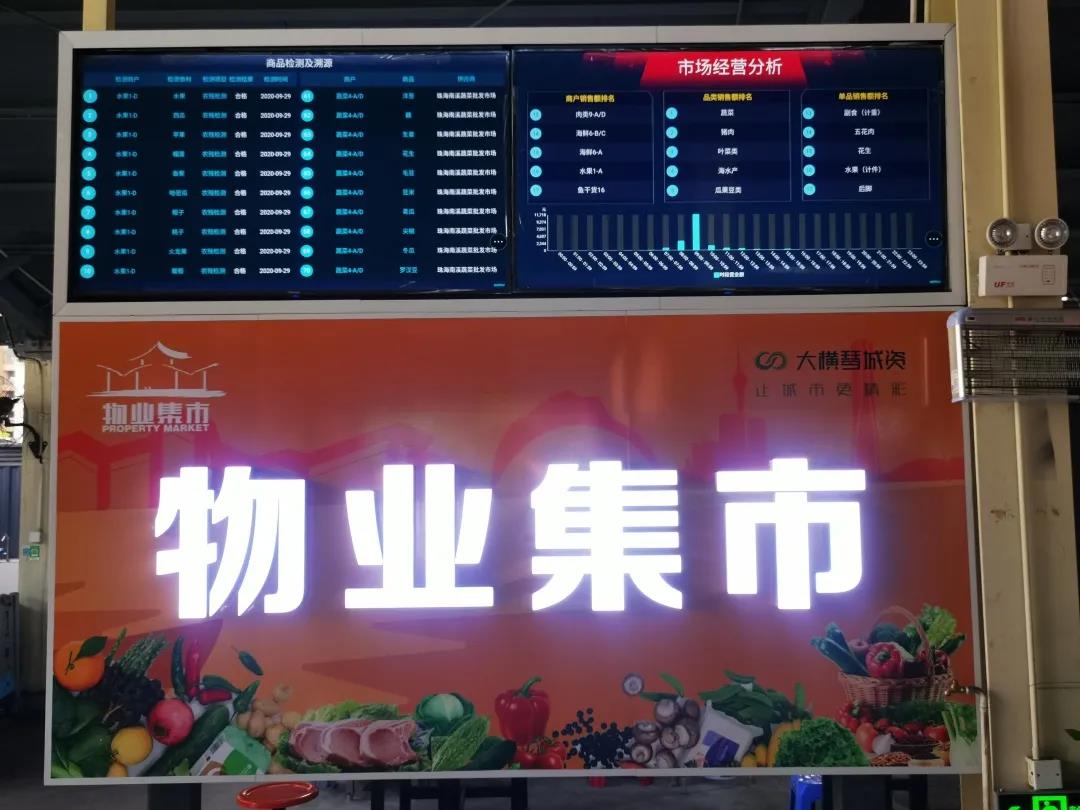 在“物業(yè)集市”內(nèi)的大屏上,可以清楚看到商品的檢測、溯源情況及市場經(jīng)營分析
