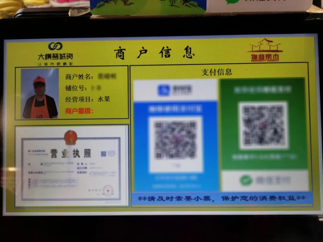 在智能秤背面,包括商戶姓名、鋪位號、營業(yè)執(zhí)照在內(nèi)的商戶信息被公示出來