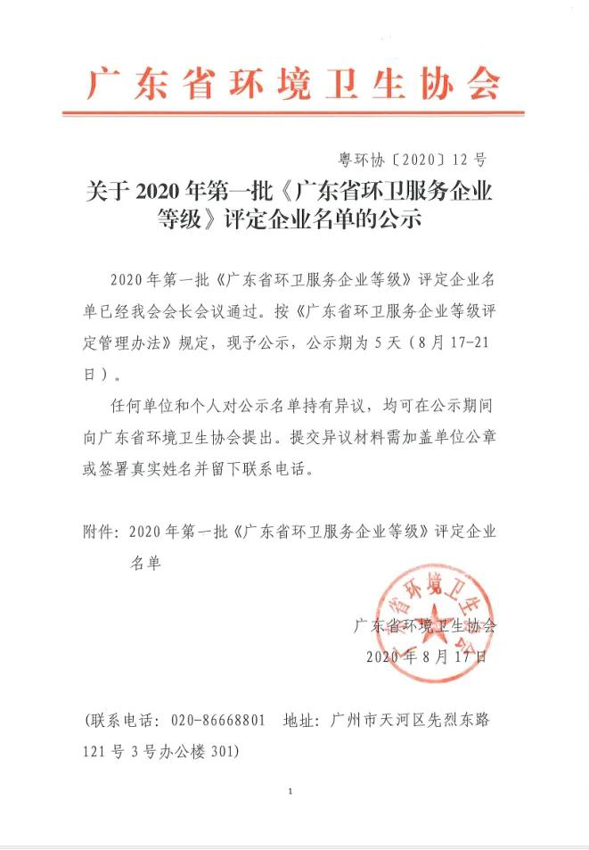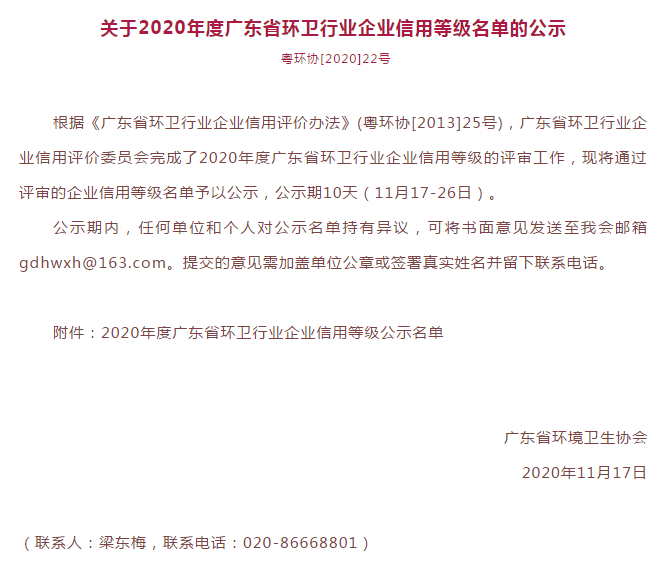 據(jù)了解,本著為環(huán)衛(wèi)行業(yè)服務(wù)的原則,促進(jìn)行業(yè)自律,營造環(huán)衛(wèi)行業(yè)誠信經(jīng)營的良好環(huán)境,廣東省環(huán)境衛(wèi)生協(xié)會(huì)按照《廣東省環(huán)衛(wèi)行業(yè)企業(yè)信用評(píng)價(jià)辦法》,啟動(dòng)了2020年度廣東省環(huán)衛(wèi)行業(yè)企業(yè)信用等級(jí)評(píng)價(jià)申報(bào)工作。