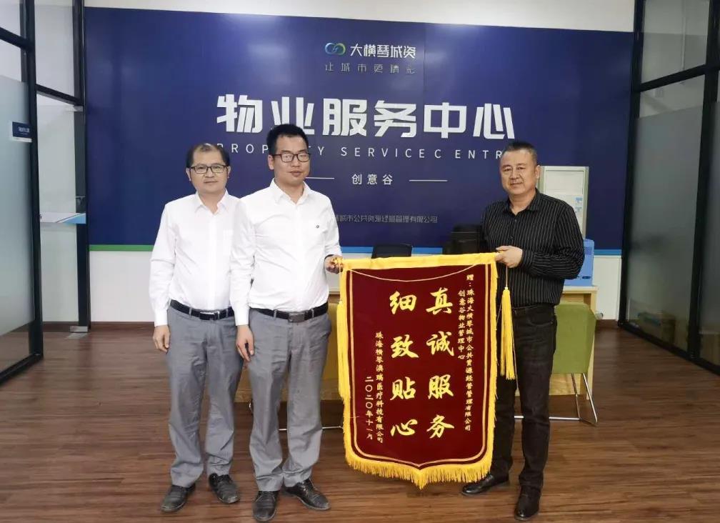 2020年11月,珠海橫琴澳瑞醫(yī)療科技有限公司為橫琴?澳門青年創(chuàng)意谷項目頒發(fā)印有“真誠服務(wù),細(xì)致貼心”的錦旗,對物業(yè)人員細(xì)致、熱心的服務(wù)表示感謝。