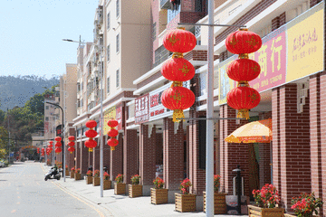 通過栽種綠植、布置年桔、掛燈籠等方式