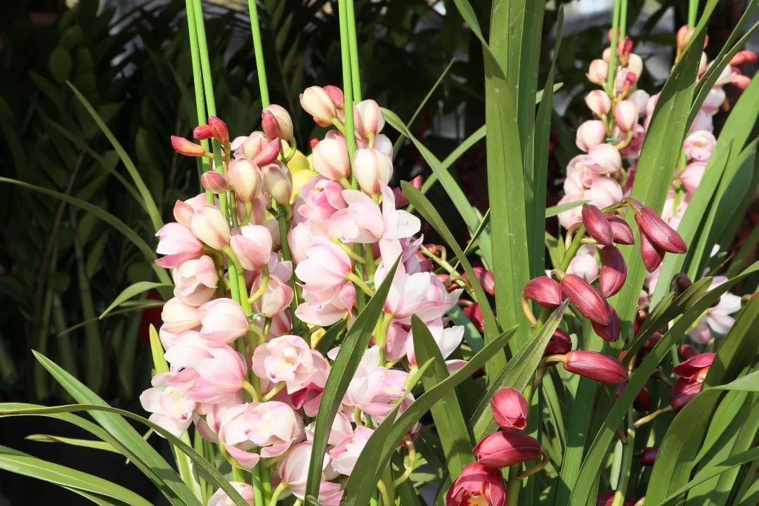 大花蕙蘭的葉片翠綠,花朵艷麗