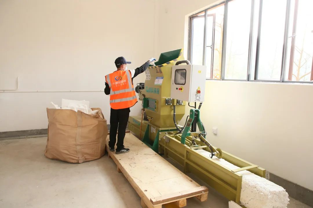 只見工作人員將一塊塊不規(guī)則的塑料泡沫投進(jìn)泡沫冷壓機(jī),隨后,設(shè)備迅速對(duì)泡沫進(jìn)行打碎螺旋壓縮處理,很快,原本大體積的塑料泡沫成功“瘦身”,以規(guī)整的長(zhǎng)方體泡沫壓縮塊的形式呈現(xiàn)在大家面前。“環(huán)保型泡沫冷壓機(jī)采用了全物理螺旋冷壓的方式,沒有熱功耗,而且壓縮過程中沒有使用任何化學(xué)藥劑和添加劑,基本不會(huì)產(chǎn)生次生化學(xué)污染。壓縮后的塑料泡沫切實(shí)降低了空間占用率,大大節(jié)約了運(yùn)輸成本。”工作人員耐心細(xì)致地講解著設(shè)備的操作原理和效能。