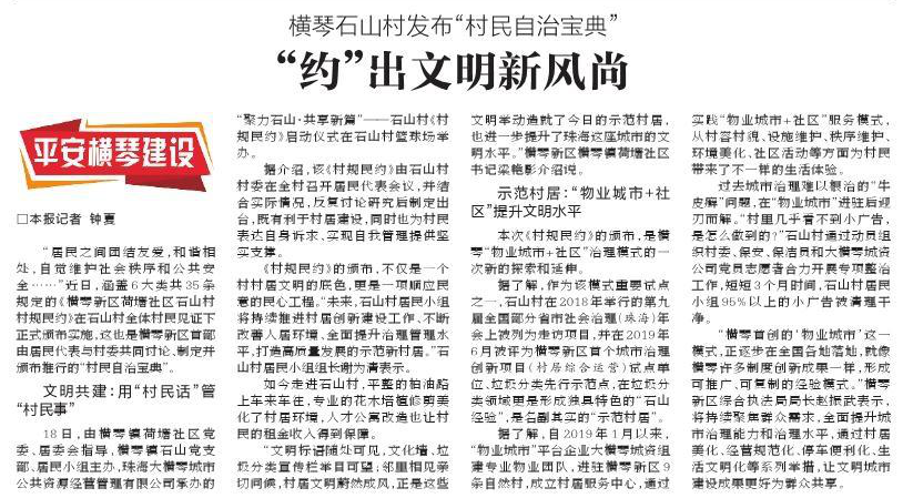 已成為橫琴新區(qū)一塊嶄新的“文明招牌”