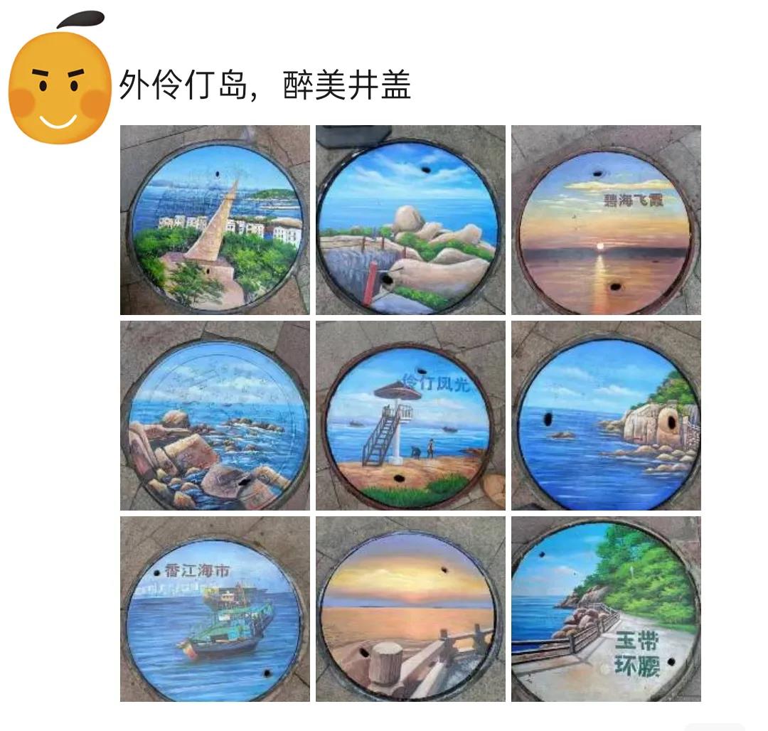 創(chuàng)新性地將“伶仃八景”“伶仃三寶”和垃圾分類等元素融入到井蓋彩繪創(chuàng)作中,以小見(jiàn)大。目前全島60個(gè)井蓋彩繪已全部完成。小小的井蓋成為提升海島品質(zhì)、展示海島特色的重要元素,成為海島的一道“微景觀”,吸引眾多游客駐足觀賞、拍照分享。
