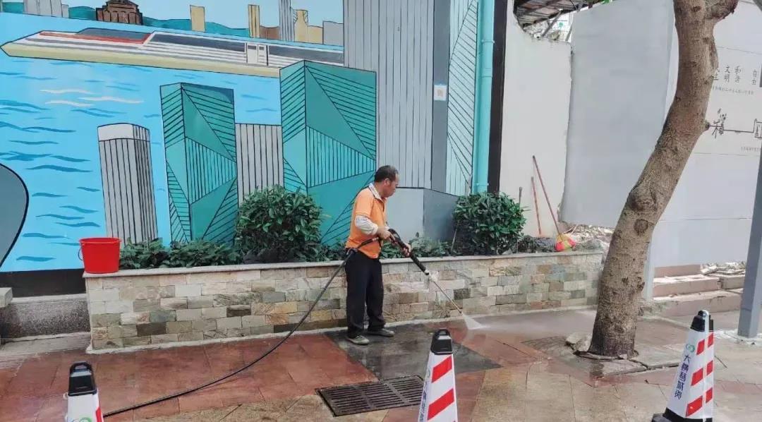 ▲保潔工具車、道路養(yǎng)護(hù)車、高壓沖洗車等齊出動(dòng)