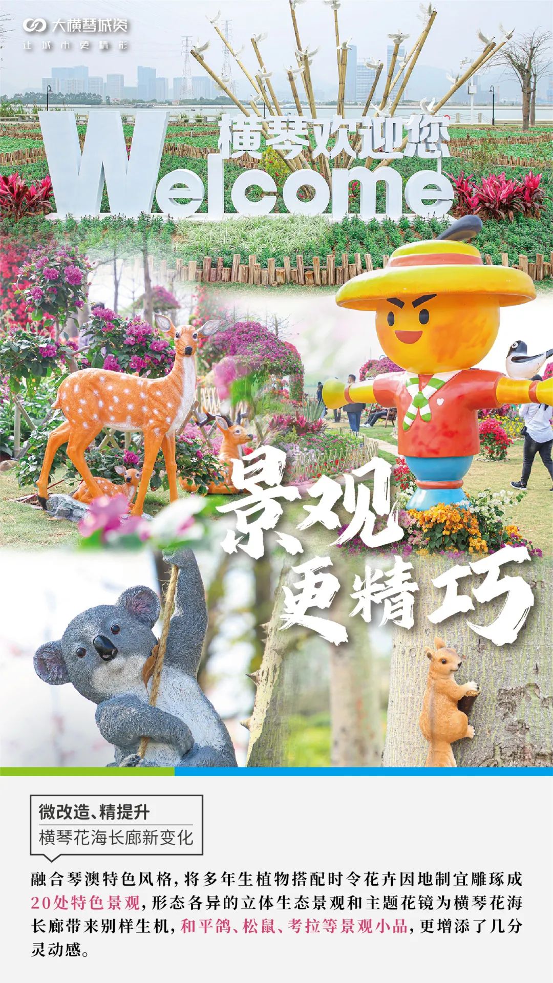 不斷優(yōu)化的服務(wù)配套和保障工作,進一步提升了市民游客的滿意度,由大橫琴城資自行建設(shè)、精心籌備的升級改造工程,更讓一個個多姿多彩的景觀變得更鮮活、更靈動、更溫暖……