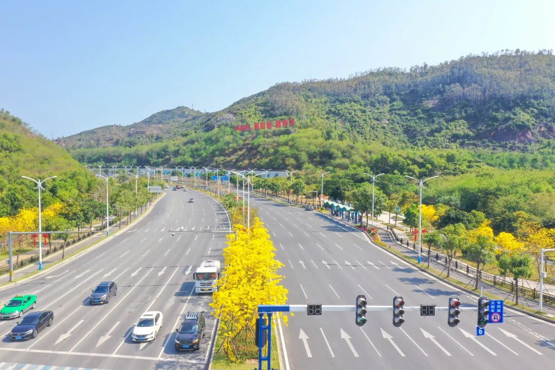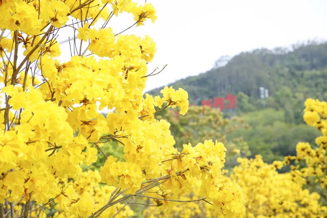 橫琴口岸周邊,黃花風(fēng)鈴木掛滿(mǎn)枝頭,用成片綻放的金黃奏響春的旋律。