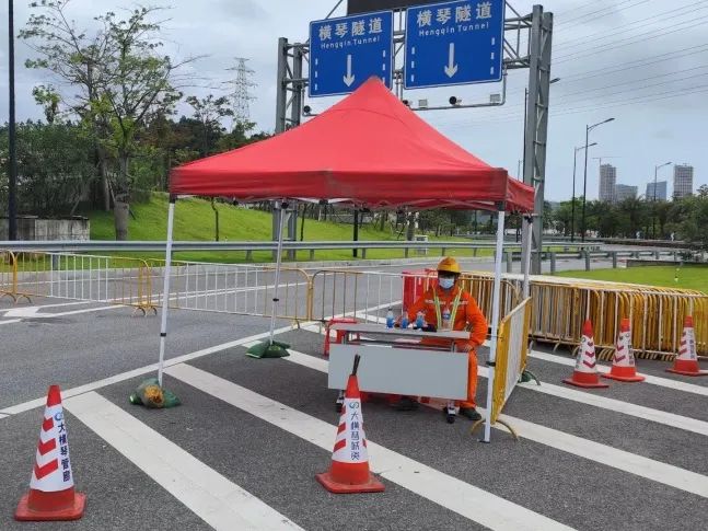 在橫琴隧道出入口,大橫琴城資積極配合交警部門對(duì)橫琴隧道實(shí)行交通管制,并在橫琴隧道東線匝道入口和西線匝道出口會(huì)車位置協(xié)助開展道路引流工作。
