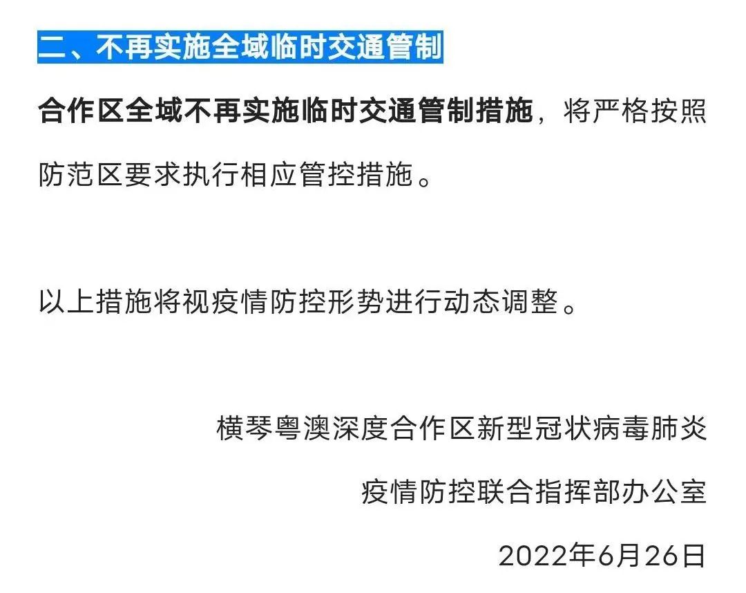 合作區(qū)全域不再實(shí)施臨時(shí)交通管制措施