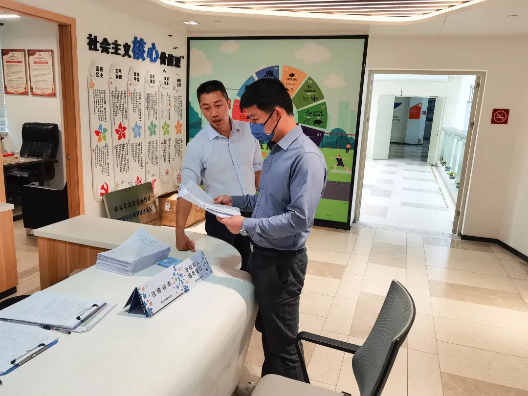 ▲廣東省政府橫琴辦政法工作處科長劉雙鳳到小橫琴社區(qū)檢查防疫工作情況