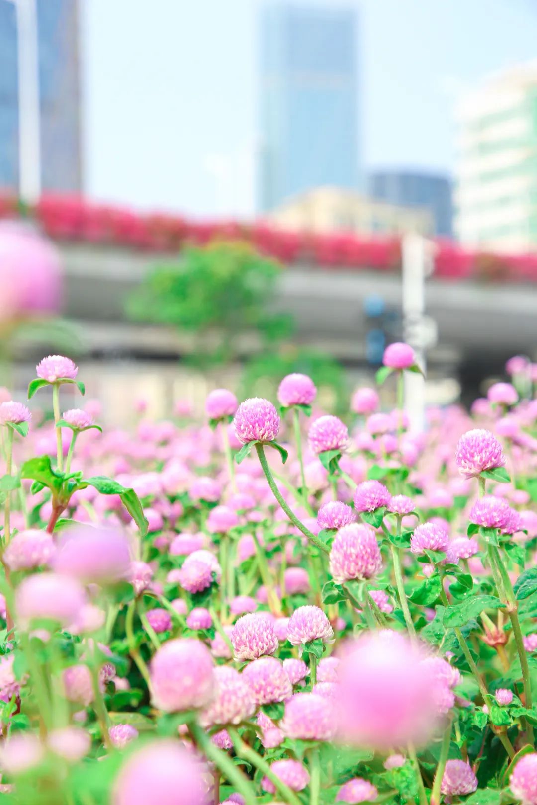 在勵駿龐都廣場和環(huán)島東路,粉色的千日粉和紫色的馬鞭草開得正盛,撲面而來的浪漫氣息惹人沉醉。