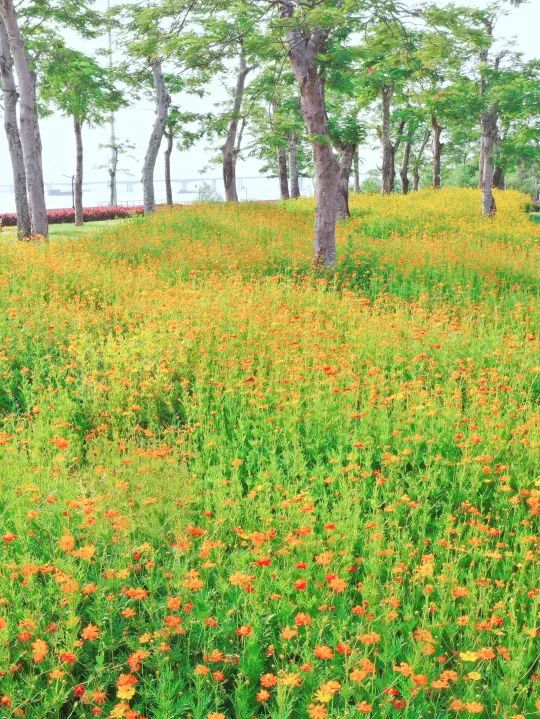 在天沐河碧道、花海長廊1號及5號驛站,硫華菊、大花百日草等各色花海肆意綻放,吸引不少游客駐足觀賞。