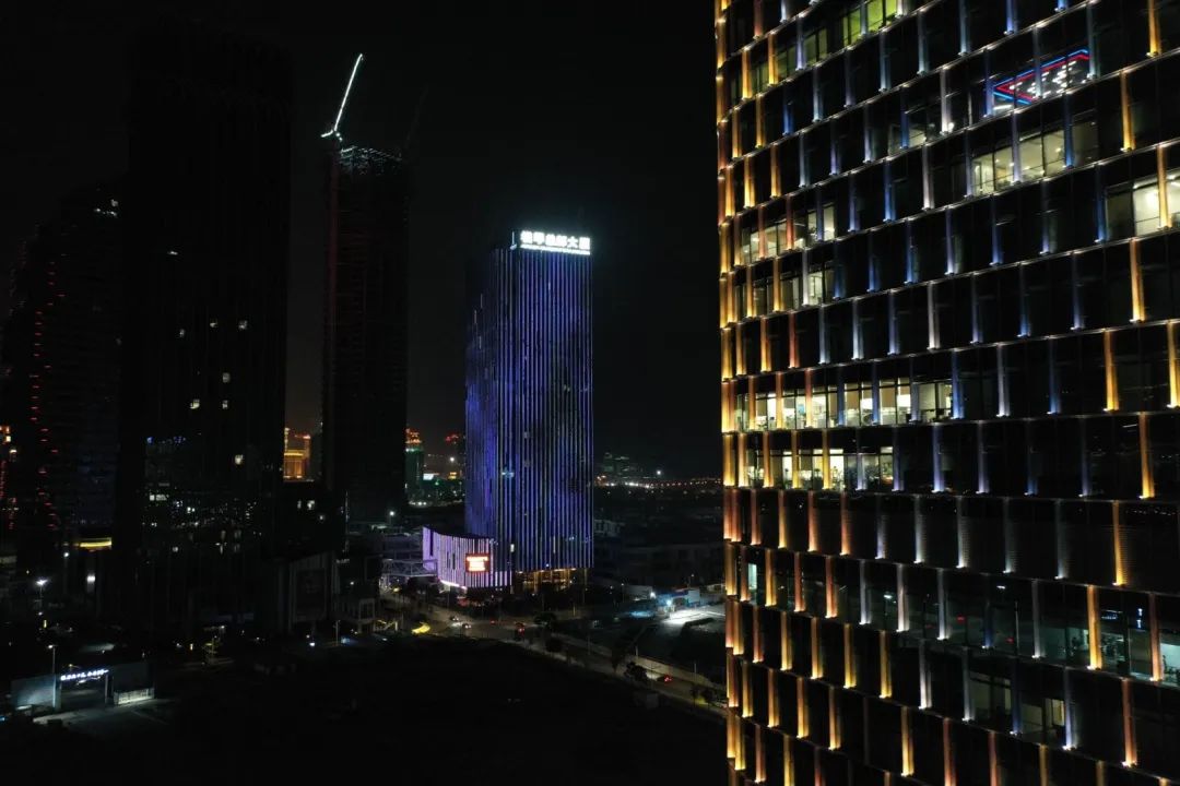 代表廣東的金木棉與代表澳門的金蓮花在合作區(qū)并肩綻放,以陣列式燈具組成的揚帆造型為畫面增添了幾分靈動美,寓意粵澳攜手打造合作區(qū)“新家園”,揚帆起航共創(chuàng)美好未來。