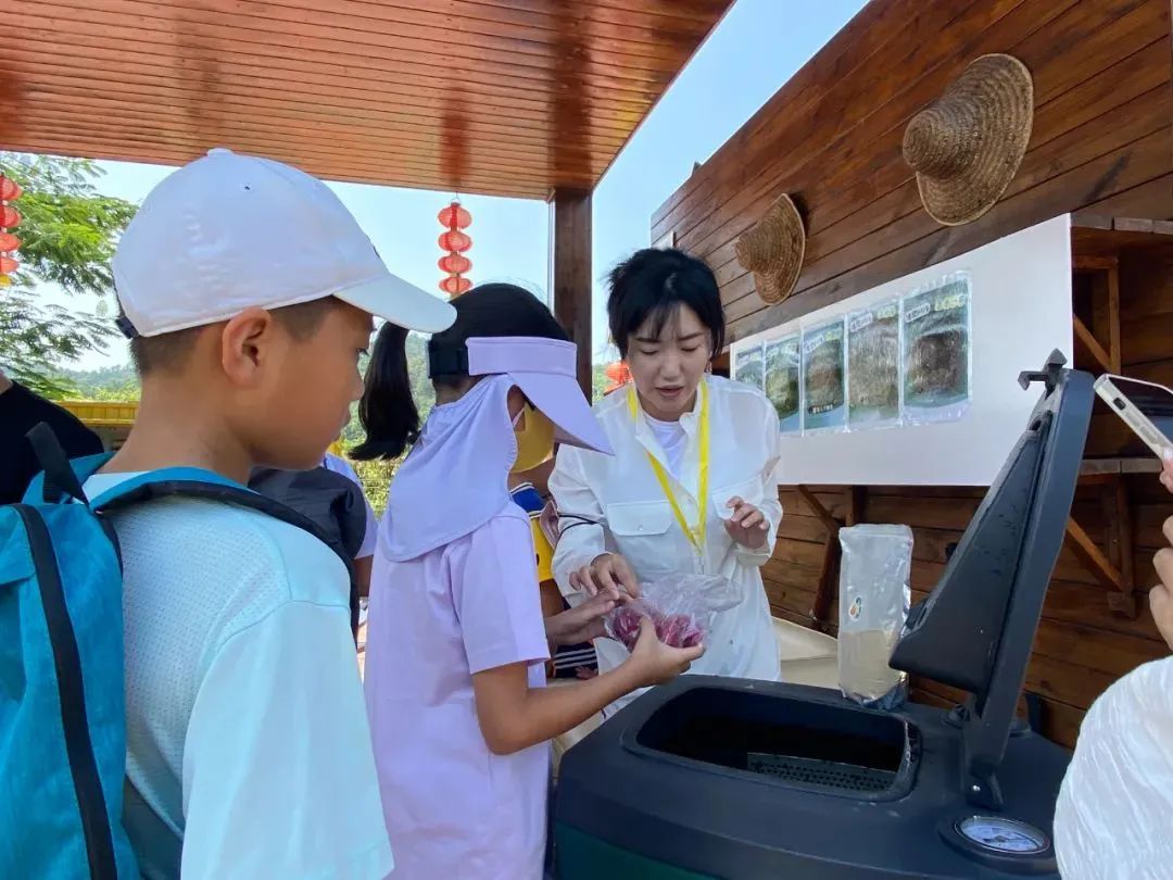 首先,小朋友們?cè)谑仿斃蠋煹膸ьI(lǐng)下參觀(guān)了農(nóng)場(chǎng)。隨后,在廚余垃圾變沃土小課堂上,張熹涵老師為小朋友們分享了垃圾分類(lèi)、土壤的類(lèi)型、廚余垃圾的作用、如何使用廚余垃圾制作有機(jī)土壤、黑水虻處理系統(tǒng)等內(nèi)容,小朋友們聽(tīng)得津津有味。老師也通過(guò)展示成功培育的沃土,讓小朋友們近距離觀(guān)察真實(shí)土壤發(fā)酵及黑水虻生長(zhǎng)的過(guò)程。