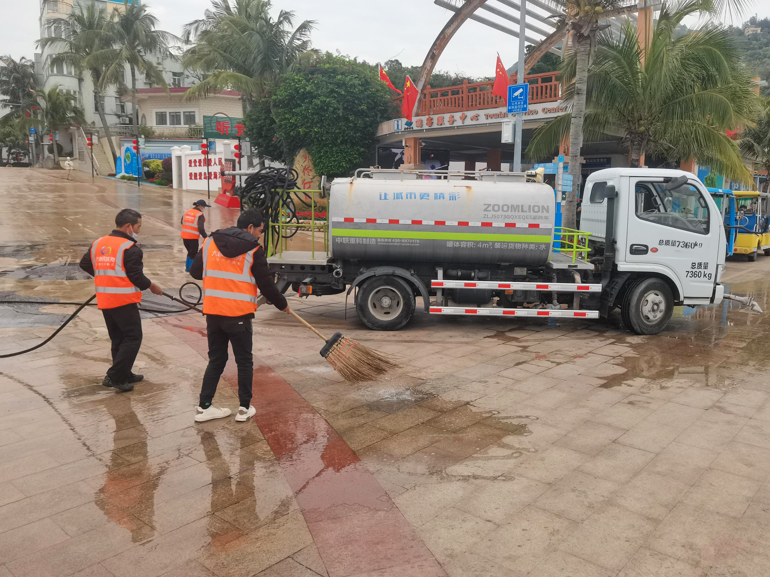 進(jìn)駐首周,大橫琴城資海島服務(wù)團(tuán)隊(duì)便迎來了春節(jié)長假的旺季保障任務(wù)。在時間緊、任務(wù)重的情況下,海島服務(wù)團(tuán)隊(duì)全體出動,積極配合擔(dān)桿鎮(zhèn)開展“除舊迎新專項(xiàng)行動”,按照“大清掃、大沖洗、大整治”作業(yè)模式,全面沖洗路面的污漬、青苔,清理垃圾、落葉、雜草等,助力營造干凈、整潔、有序的海島環(huán)境。