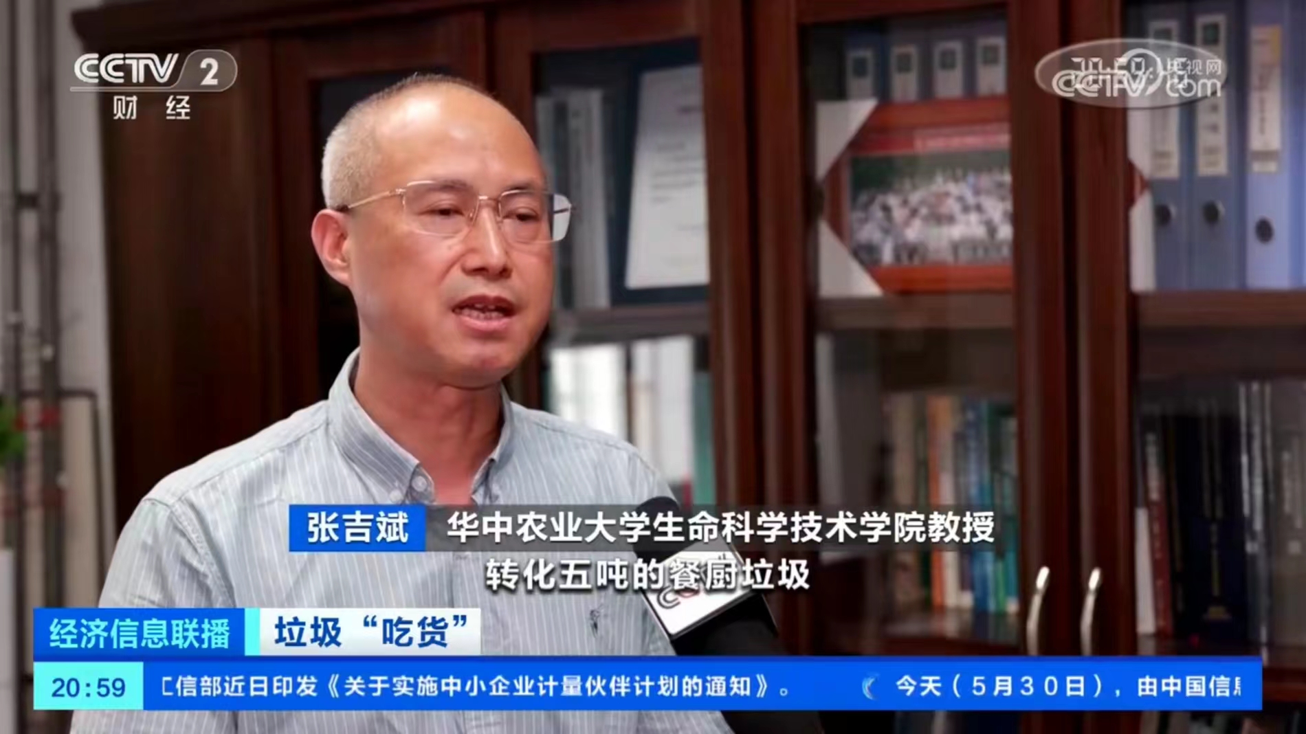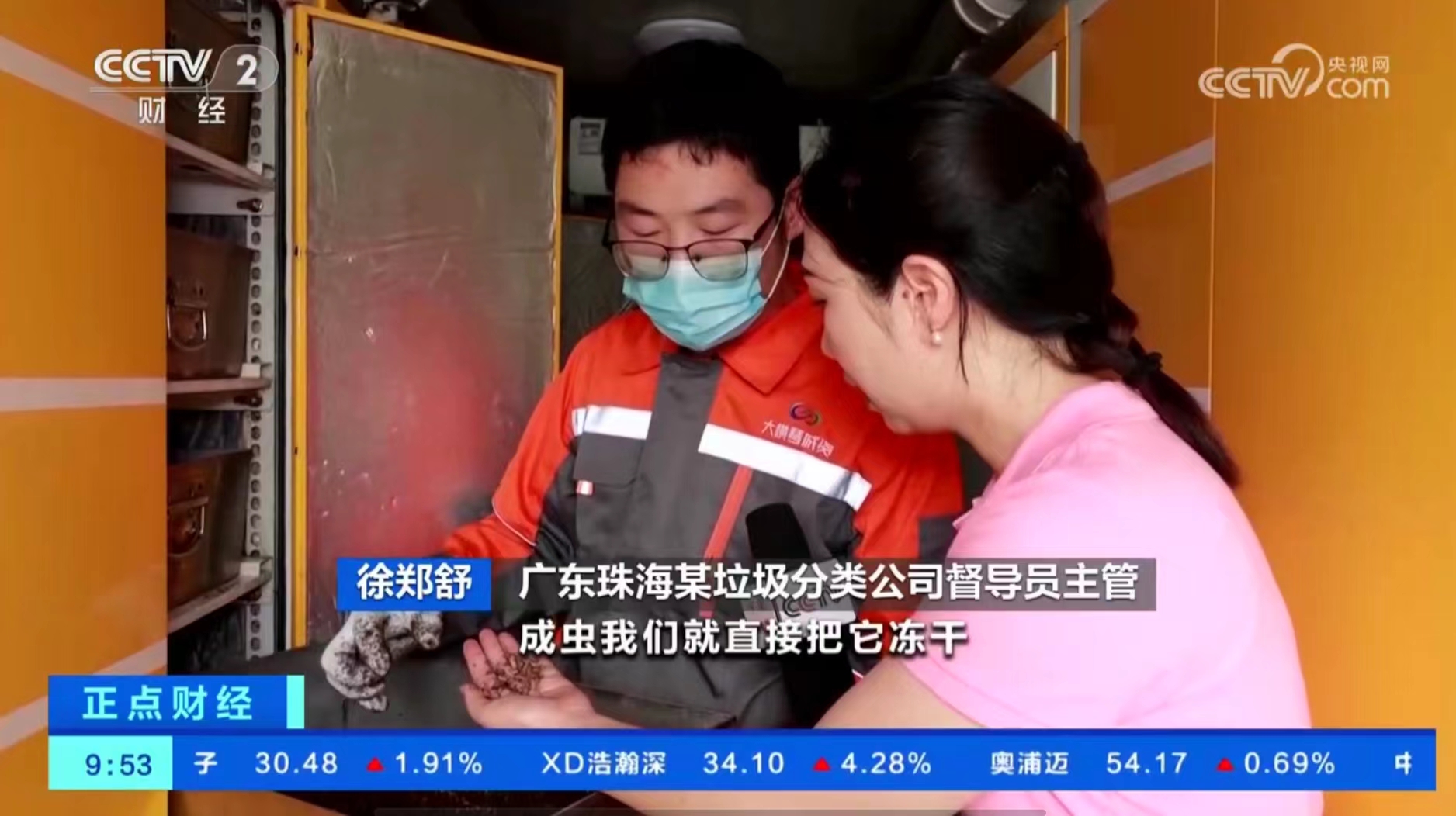 華中農(nóng)業(yè)大學(xué)生命科學(xué)技術(shù)學(xué)院教授張吉斌:“轉(zhuǎn)化5噸的餐廚垃圾,可以產(chǎn)生1噸的鮮蟲,產(chǎn)生大概2噸左右的昆蟲蟲肥,實現(xiàn)零排放,而且把它變廢為寶,可以實現(xiàn)綠色循環(huán)的產(chǎn)業(yè)鏈。”