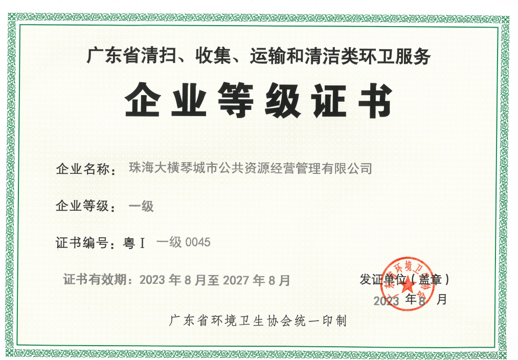 此次獲評(píng)“清掃、收集、運(yùn)輸和清潔類環(huán)衛(wèi)服務(wù)企業(yè)”一級(jí)評(píng)定,既是對(duì)大橫琴城資服務(wù)能力的高度認(rèn)可,也是激勵(lì)和鞭策。