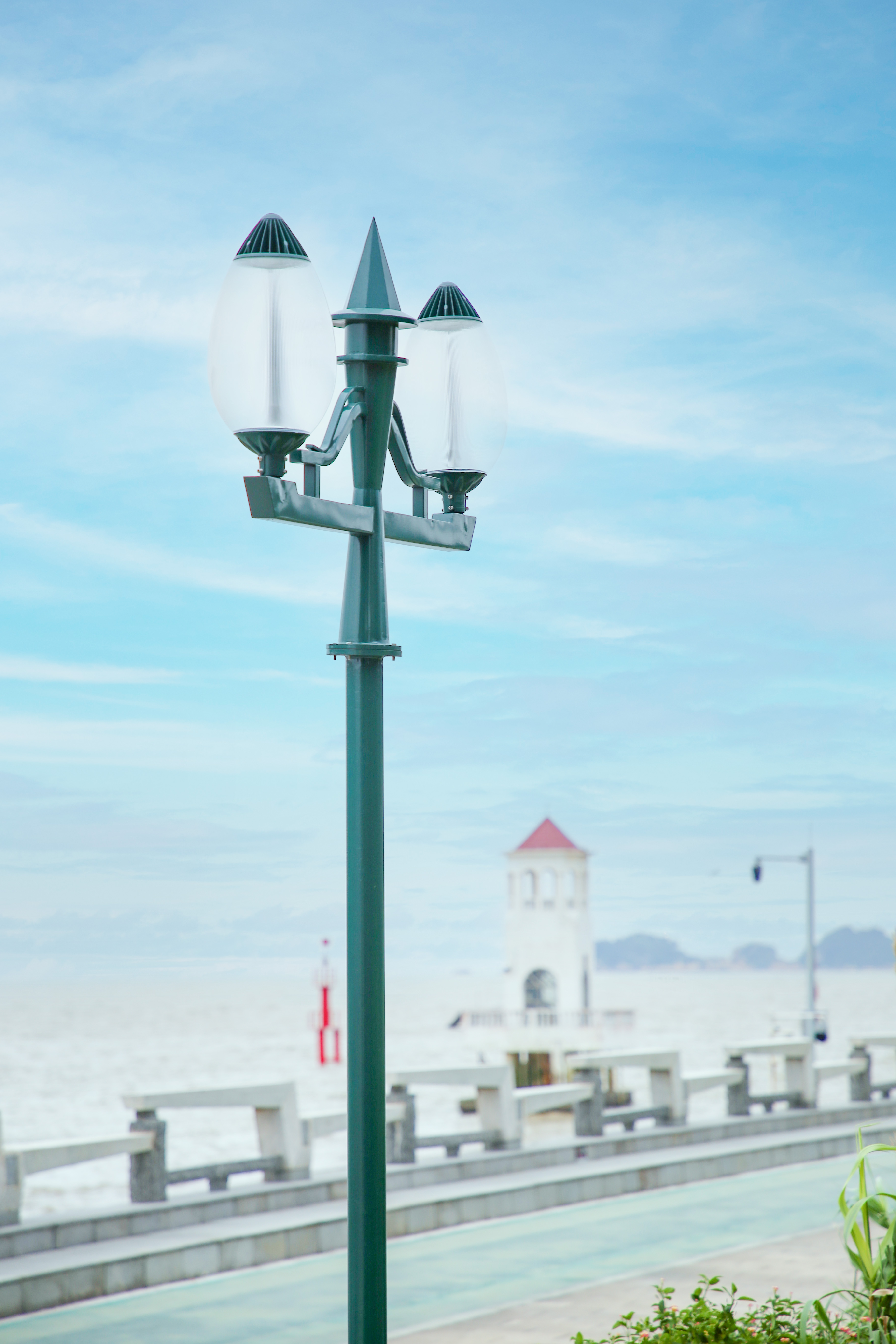 在燈桿、燈具材質的選用上,遵循防雨、防塵、防銹的原則;在整體造型設計上,以粵澳融合為主題,燈桿融入澳門旅游塔和嶺南建筑等特色元素,燈具則以含苞待放的花苞為造型,以此表達粵澳兩地交心、交融,欣欣向榮的美好祝愿;在電纜升級改造上,依托漏電防護新舉措,選用新型的路燈電纜防水接頭,優(yōu)化接線方式、方法,助力提升管養(yǎng)品質。